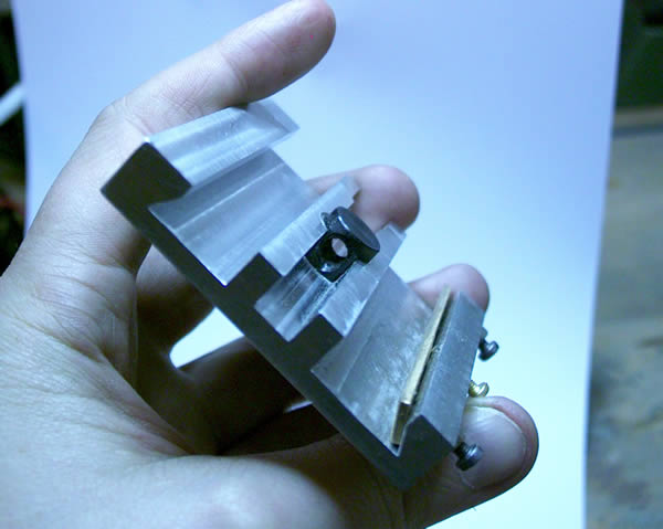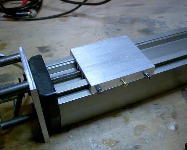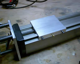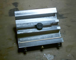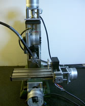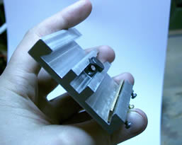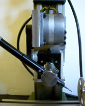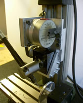 Necessity is the mother of all invention but I have to say I did not really need a 5th axis nor did I invent it. However after I decided to make a 5th axis for the Proxxon I did need to work out a way to do it on such a small machine. All my inspiration has come from Rab's Rainnea CNC website. He has made a number of 4 and 5 axis machines based on both a Taig mill and from scratch. I decided to follow the method he used on his Taig and use my existing 4th axis rotary table and add another rotary axis to allow the spindle to be rotated. This allows me to mill on five sides of a cube (you need to hold it after all) drill holes at any angles and other cool stuff. Chess pieces or more likely pilots for my models are obvious examples. Other advantages relate to speeding up the milling process. A slope for example would most probably be milled will a ball ended mill with a step over set to be small enough for a good finish. Adding a rotary axis to the spindle means that an endmill can be used with a step over of just less than the diameter of the cutter. This applies to milling more complex forms as well. Also operations like engraving onto spherical objects become possible. Did I mention it was cool? Problem 1: Rab's method of conversion was to remove the milling spindle and replace this with a small rotary table to which was mounted a router. Firstly the router is lighter than the original spindle which helps considering the extra weight of the rotary table and also reduces the load on the rotary axis. Secondly, it has a high speed which is good for the type of work Rab seems to have done. The problem is that the spindle of the Proxxon is a one piece unit, the big green lump is one piece and includes bearing mounts for the spindle, and the dovetail for the z axis. Therefore before I could do anything else I needed to make a dovetailed carriage that could slide up and down for z movement and have a rotary table attached to it. I made this as a modular unit, both to split up what seemed like a big project but also to allow me to make other bolt on attachments if I saw fit. Things like a vinyl cutter with blade rotation or something. Below is the dovetailed slide in all its glory. It is made from aluminium and uses the original gib strip and Delrin nut from the proxxon spindle assembly. I runs very well indeed, at least as well as the original and possibly better as the nut is a better fit in my version. |