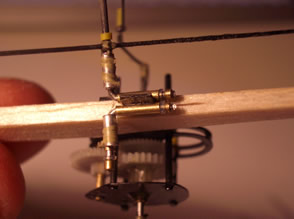 At the Nunthorpe meet I had very little sucess, I had never been able to get the stable glide I had been used to with the test model. Further investigation showed that the problem was simply poor wing covering, I had put it on too slackly, not normally a problem for ornithopters but as this has a full set of ribs and relys on the wing acting like a wing rather than a rogollo type affair it needed to be tighter. Further tests showed better stability but no climb, in fact a degraded climb over the test model with 64:1 gear ratio despite it being lighter. There is a chance that the cell is bad but I suspect there was a slight change in geometry when assembled in the current form. The assembly was actually more accurate this time so perhaps I was lucky the first time.