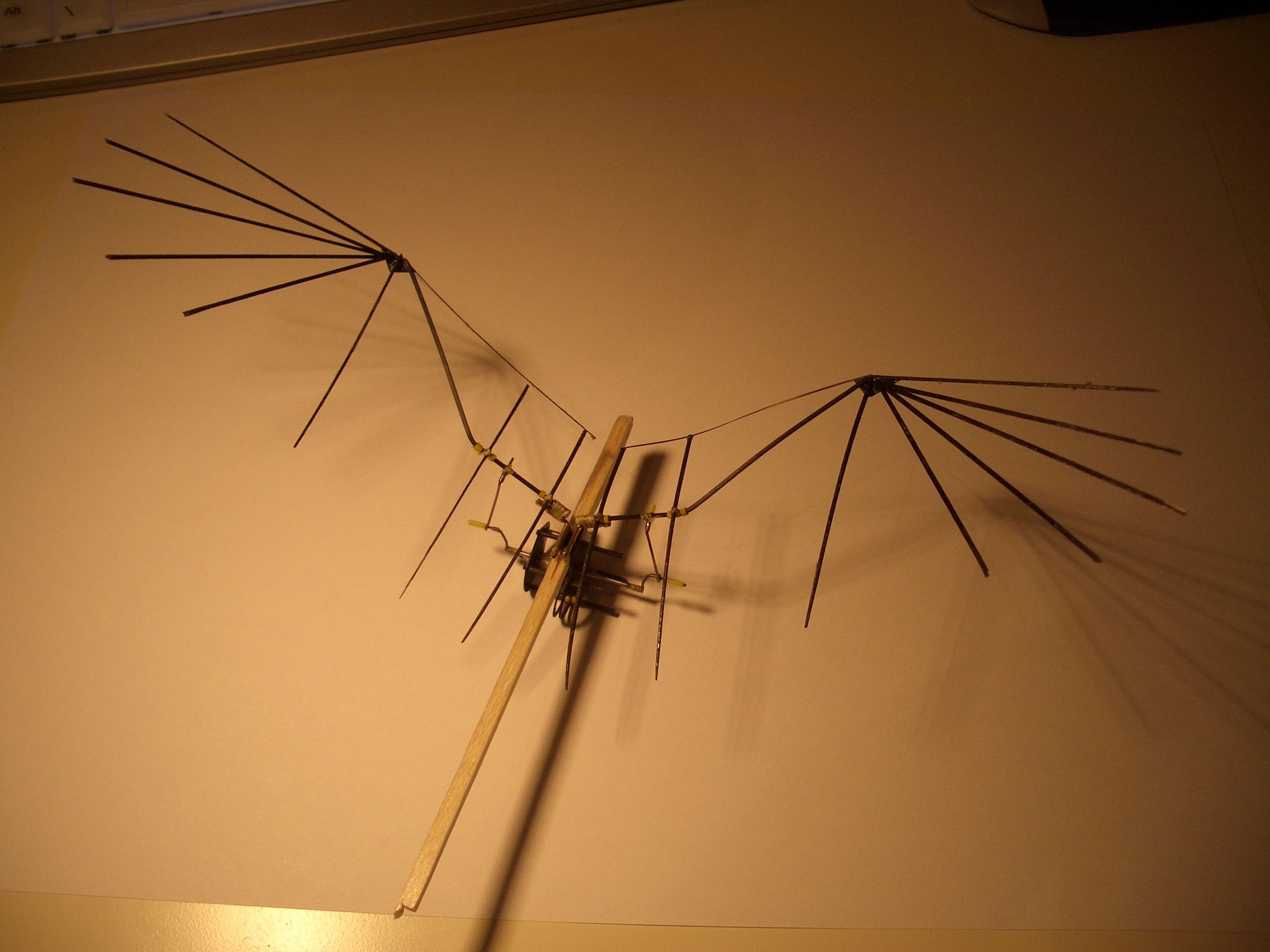 The gearbox has been constructed with a 64:1 ratio and so have the hinges and conrods etc, this is another test rig. Hopefully this will be used in a partial FF model and genrally to check the mechanism is durable and attempts to fly. Tail to be added.