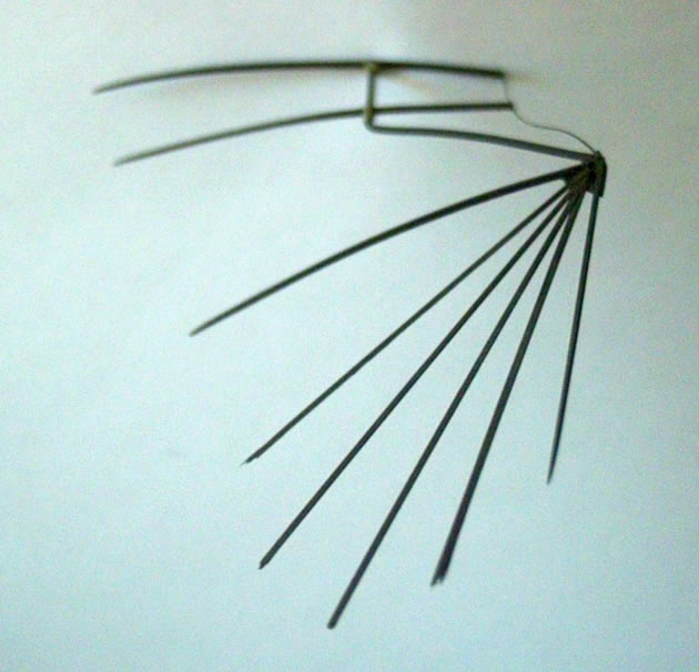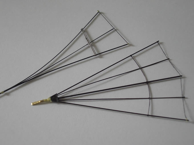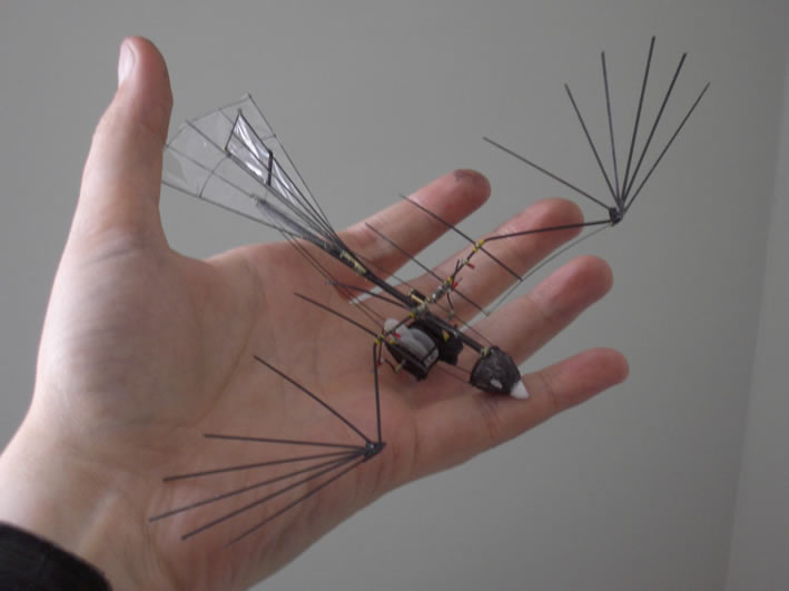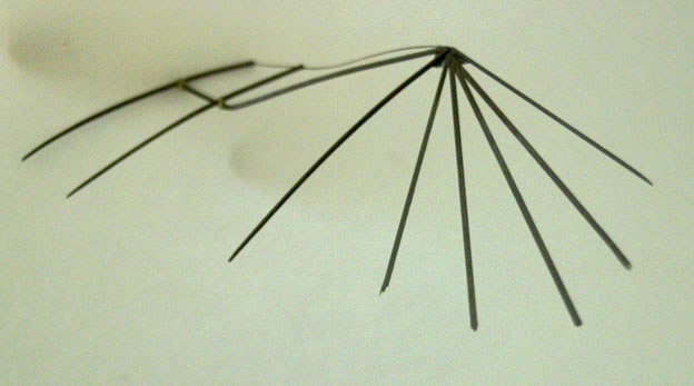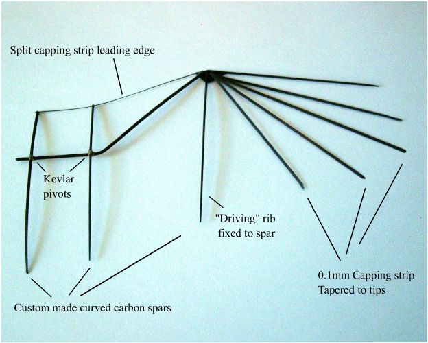 Notice the wing twist, the two inner ribs hing on the spar only the driving rib before the fingers is fixed to move with the spar rotation.